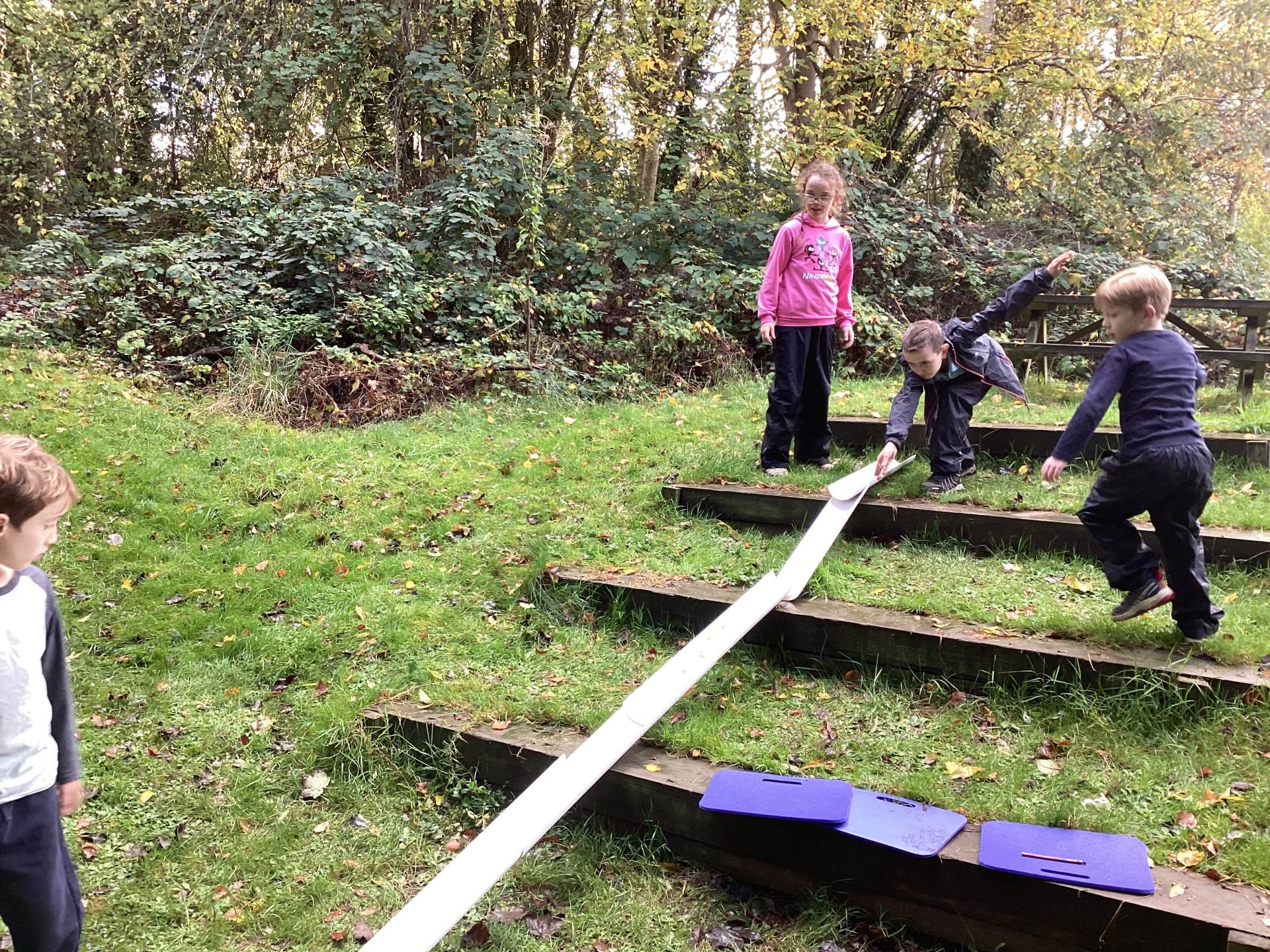 Some of us chose to invent a game with the acorns- creating a ramp system to roll them down! e also created an obstacle course using natural materials like logs and branches.