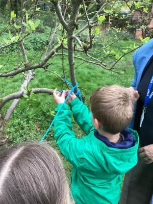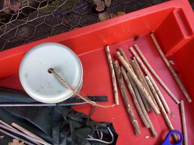 We also learnt a new knot- the clove hitch. We practised the 'fish on the dish' method of making this knot and then some children tied some twigs together using this knot to make bug hotels ready to hang in the woodland to help minibeasts as we enter the colder seasons of the year.