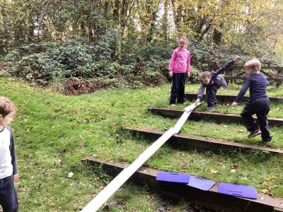 I also put the children into teams and challenged them to use the tarpaulin and rope resources to make some shelters by themselves- everyone had a really good try and it was great to see the knots we have been practising being put to use!