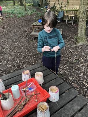 Skills: we practised making the overhand knot using our practise ropes and then applied this in a game. We also used knots to make bird feeders using cheerios and twigs!