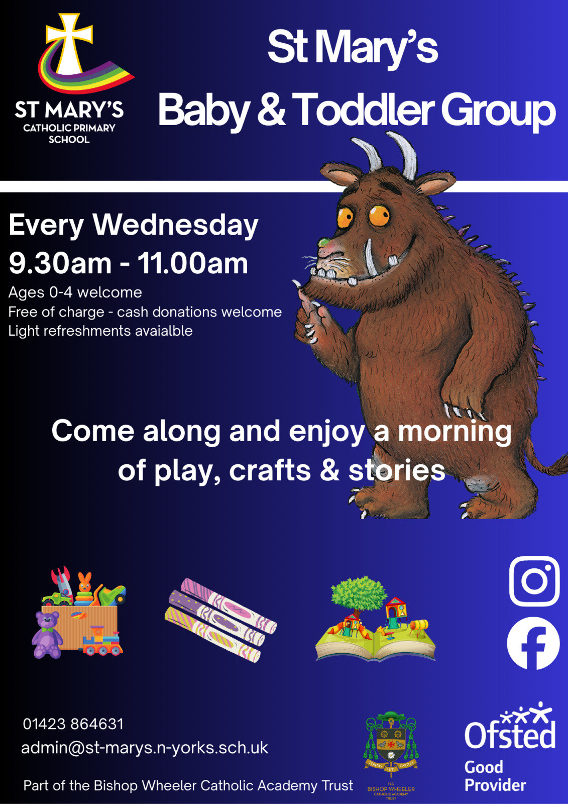 Our Baby and Toddler group runs every Wednesday during term time from 9.30am to 11.30am.